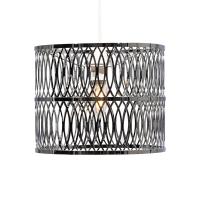 Camena cylindrical table lamp with a polished metal lattice, with contemporary interlocking oval loop pattern.